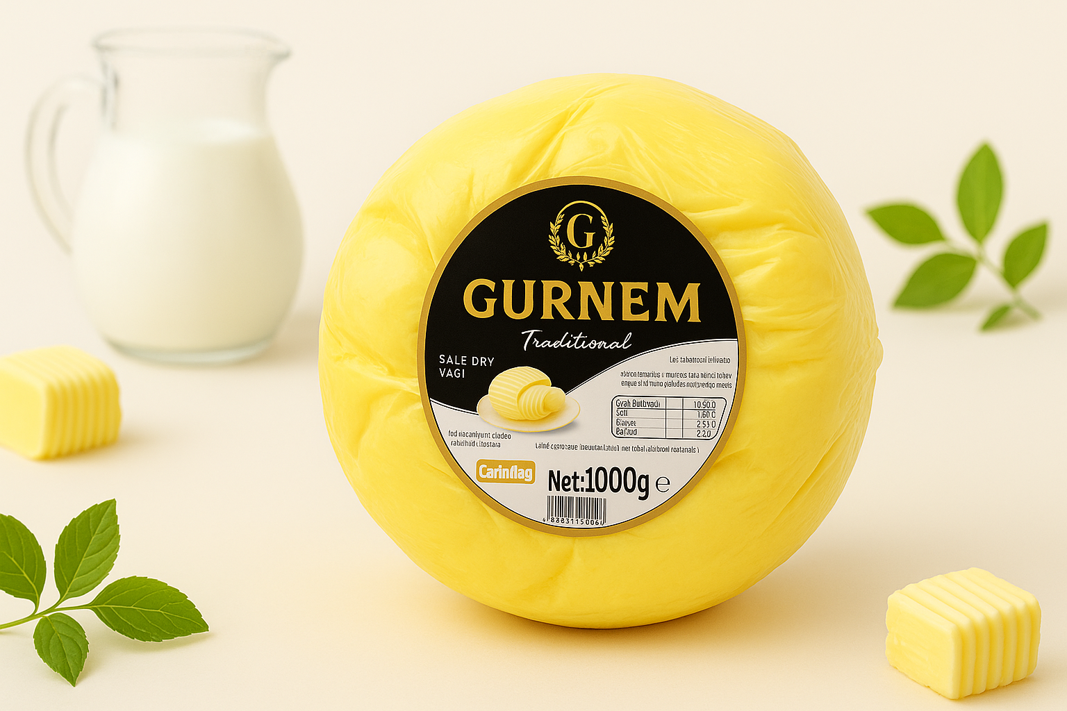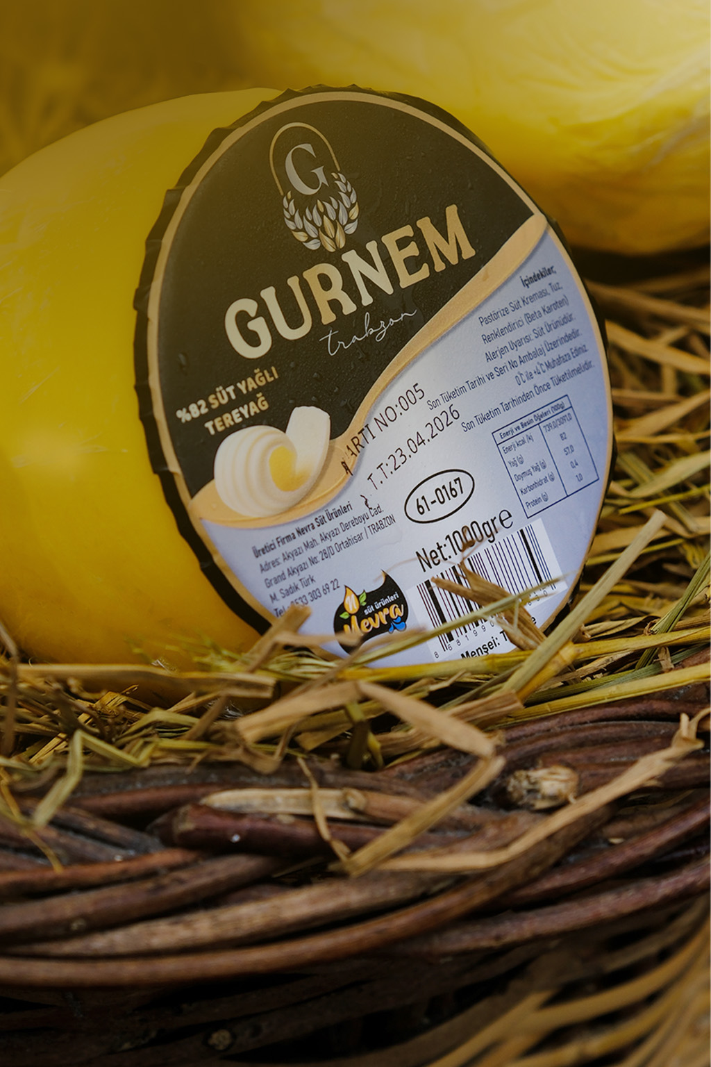 Geleneksel yöntemlerle üretilen Gurnem Tereyağı, yüksek süt yağı oranı ve saf kıvamıyla sofralarınıza doğallık katar. Katkı maddesi ve koruyucu içermez, tamamen sütten elde edilir.